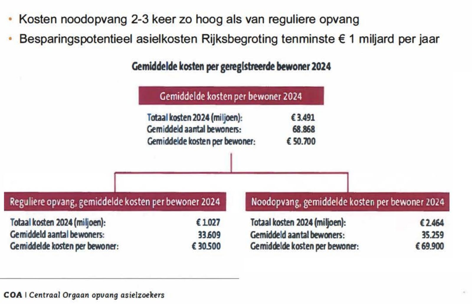 Nederland vangt al jarenlang minder asielzoekers op dan het Europees gemiddelde. Dat het opvangbeleid tot een chaos is verworden, valt vooral de VVD te verwijten. De wanorde ontstond juist in de jaren dat deze partij aan de macht was. Zij is op zijn minst medeverantwoordelijk voor het voortdurend ge-jojo in opvangcapaciteit, stelselmatige ondermijning van uitvoeringsorganisaties, en bewuste frustratie van de alom door de VNG en Raad van Openbaar Bestuur gewenste, en door de Tweede Kamer (inclusief de VVD) aangenomen spreidingswet.